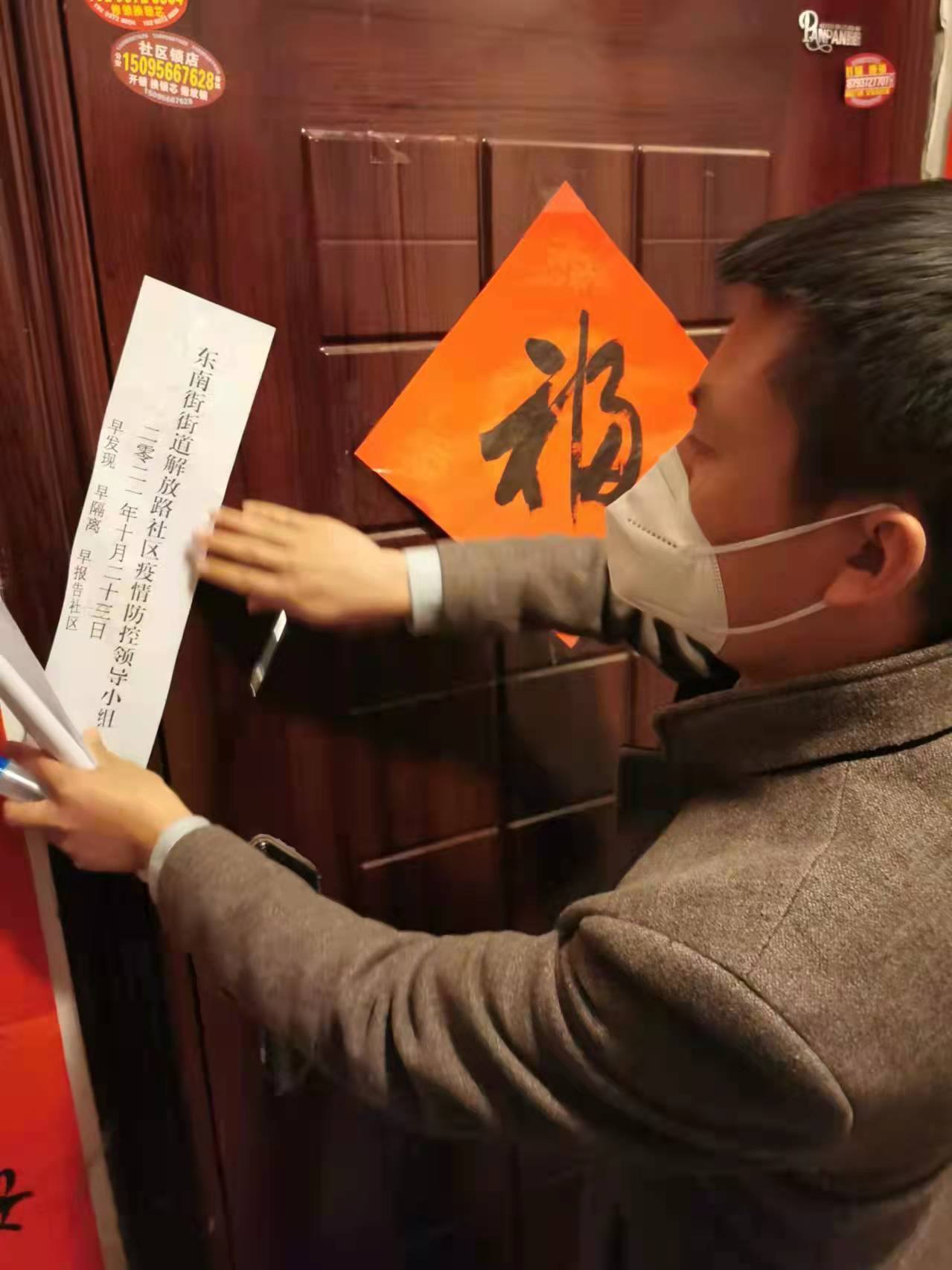 10月23日听到有承担疫情防控任务后,张海涛等志愿者同志主动请缨、勇挑重担,如愿加入到志愿者队伍,奔赴解放路社区开展疫情防控工作,从接受疫情防控工作简单培训到领取抗疫工作任务,再到投入抗疫一线开展实战,每一项工作都认真负责、奋勇争先;维护核算检测现场秩序、入户动员走访、耐心解答防疫知识、生活物资保障及垃圾处理等一系列任务都在紧张有序的推进和耐心细致的完成中。