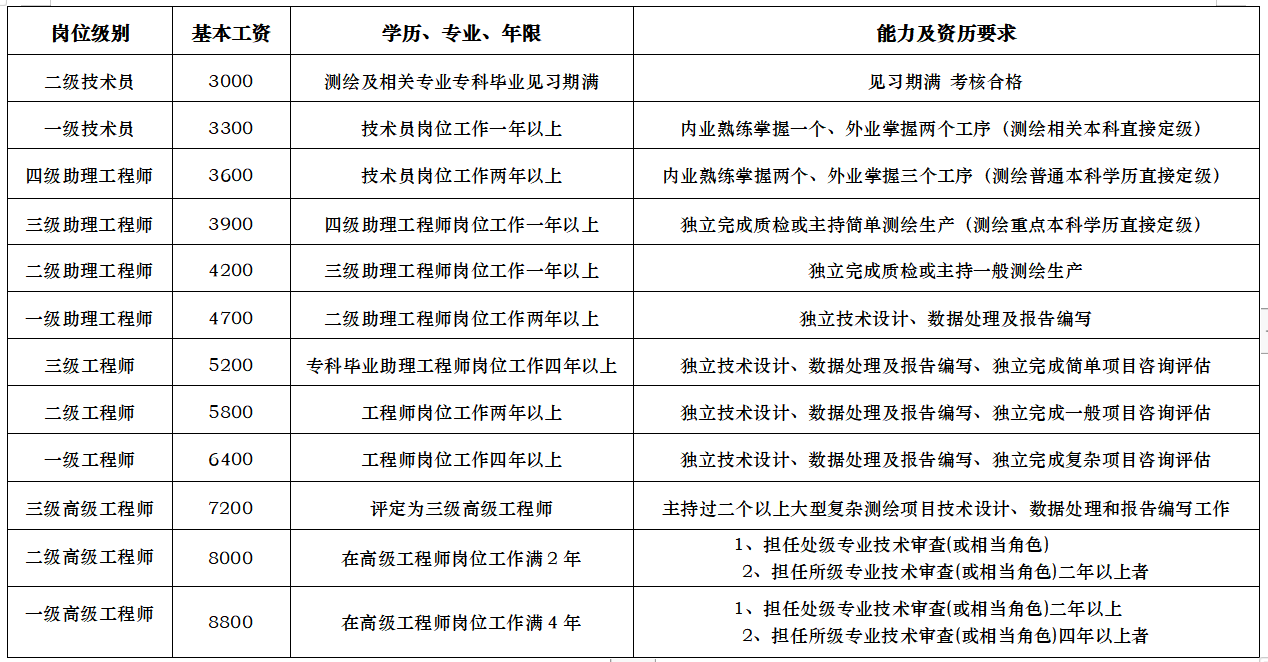(4)定岗之后待遇:见习期满经考核合格后依据专业技术及工作能力进行定岗(技术员、助理工程师、工程师、高级工程师共四级十二档),定岗为二级技术员,基本岗位工资每月3000元。定岗第一年月收入:月工资=工龄工资+岗位基本工资+伙食补助+计件工资+绩效工资≈6000~8000元。年终根据贡献大小发放年终奖。