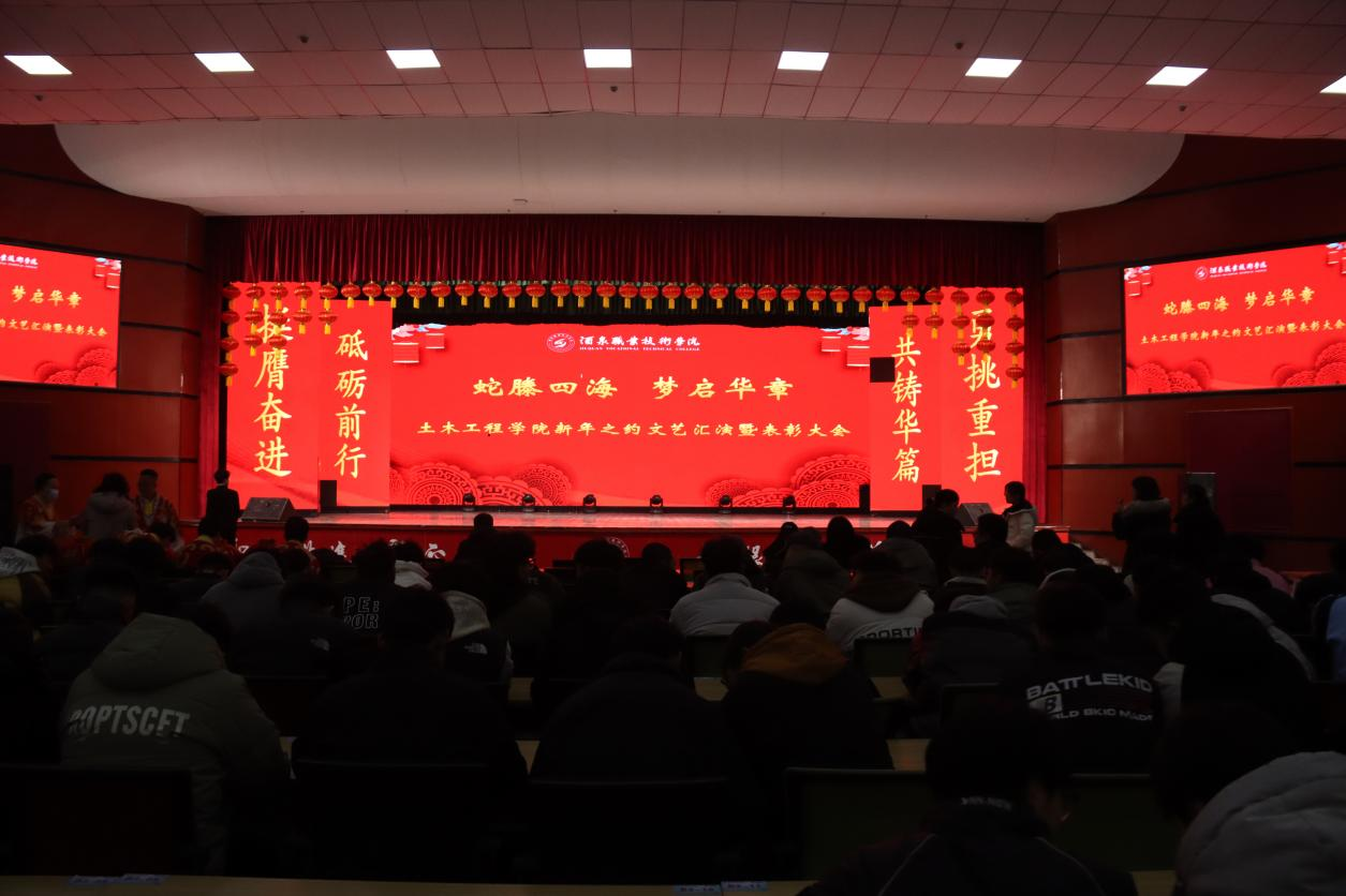 一元复始,万象更新,2025年的钟声即将敲响。为丰富学生们的校园生活,增强团队协作能力和集体荣誉感,在岁末年初交汇之际,土木工程学院于2024年12月29日晚在胡杨文化活动中心举办了以“蛇腾四海,梦启华章”为主题的“新年之约”文艺汇演暨优秀学生表彰典礼。