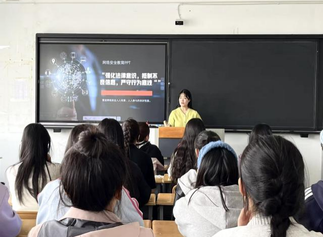 教育活动采取线上线下相结合的方式,实现全员覆盖,在校班级通过典型案例剖析、法律法规知识普及等形式,让学生更直观地了解到网络诈骗、个人信息泄露等事件的严重后果,帮助学生强化法治意识,牢筑网络安全防线。提醒同学们谨防网络诈骗,切勿沉迷于网络游戏,避免点击不明链接或下载未知来源的文件,切实保护自身安全。