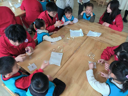 活动开始,志愿者们运用生动形象的图片和童趣语言,为小朋友们讲解了新能源发电的工作原理。理论讲解结束后,志愿者们带领小朋友们一起拼装小型风机、风向风速仪等模型。志愿者们耐心指导,小朋友们积极动手,在欢声笑语中将书本上晦涩的文字,转化成生动有趣的生活现象,让小朋友们真切感受到新能源与生活的紧密联系。