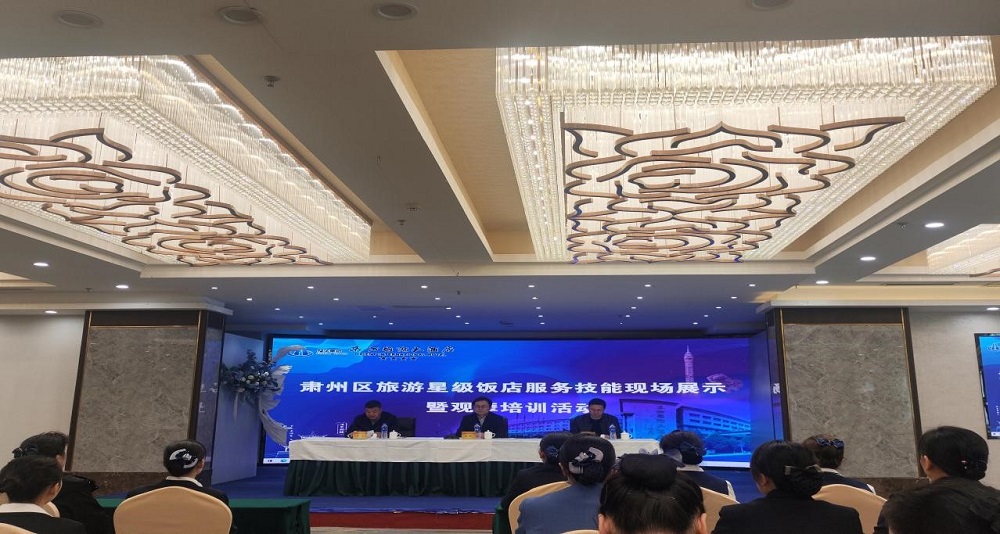 2025年4月10日,肃州区旅游星级饭店服务技能展示暨观摩培训活动在东方国际大酒店举行,出席此次活动有肃州区文旅局的相关领导、肃州区星级饭店相关从业人员、酒泉职业技术大学旅游与烹饪学院师生等近百人观摩学习。