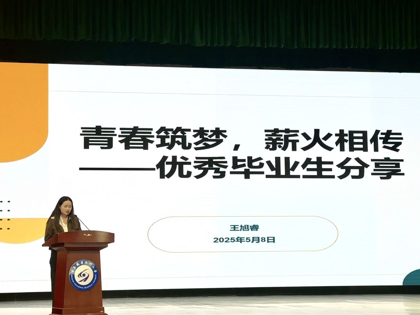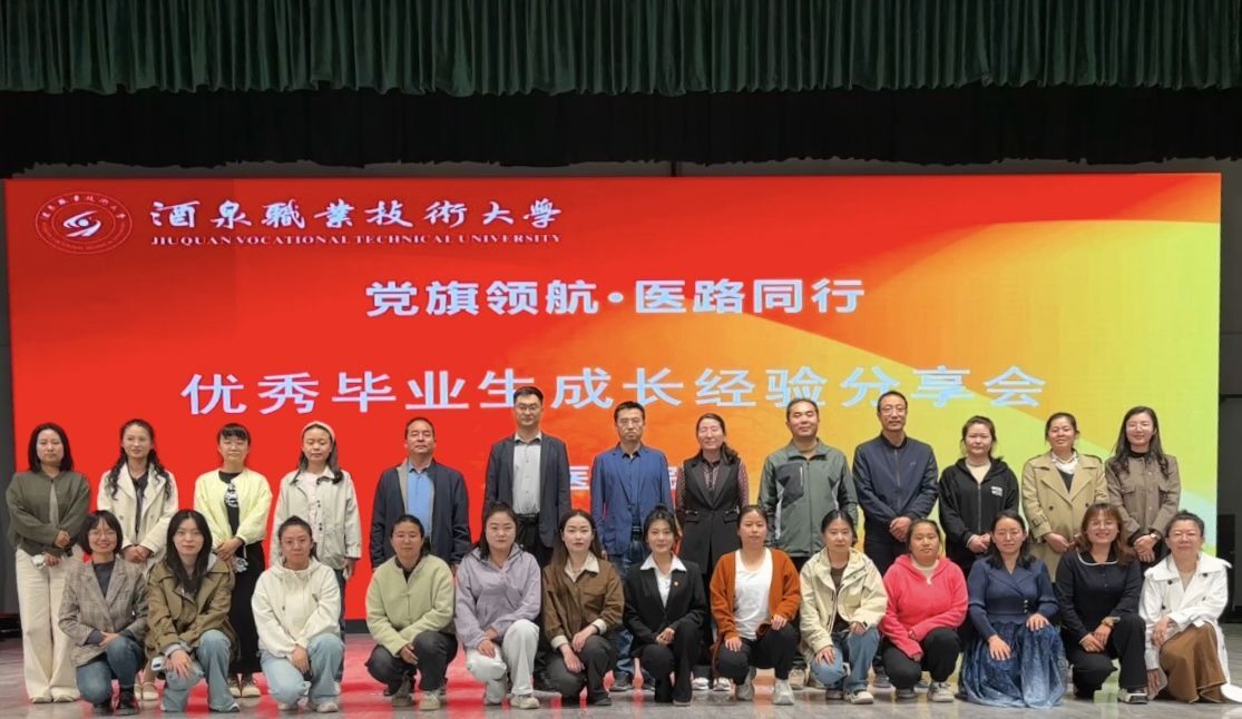 5月8日,医学院党支部在胡杨活动中心成功举办"党旗领航·医路同行"优秀毕业生成长经验分享会。会议由医学院党支部副书记段国萍主持,6位来自医疗一线的优秀毕业生重返母校,与500余名师生分享了他们在党建引领下的职业成长故事,展现了新时代职教学子的风采。