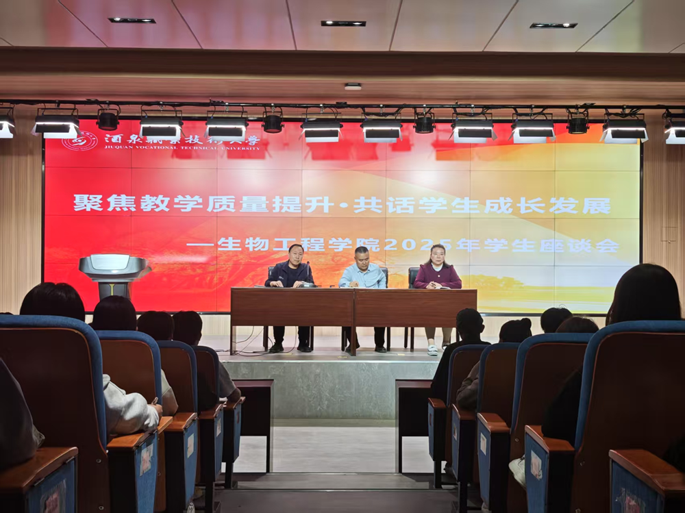 院系动态 > 正文2025年5月9日下午,生物工程学院在弘毅楼C座101闻道厅召开2025年学生座谈会。会议由生物工程学院质量督查办公室主任王玉明主持,学院主管教学副院长王洪亮出席,教师代表及2023级、2024级各专业学生代表共60 人参加会议。