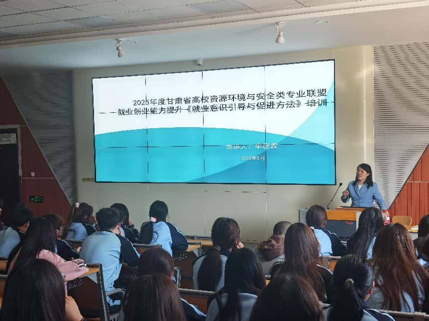 为进一步加强我省高校资源环境与安全专业毕业生就业联盟就业指导建设,提高学生的就业实战能力,5月10日,甘肃省高校资源环境与安全类专业联盟就业创业能力提升线下讲座活动在酒泉职业技术大学行知楼一楼阶梯教室顺利举行,来自联盟委派的李彦霖老师和王龙云老师与在座的学生们分享了关于大学生就业及创业方面的宝贵经验和成功案例。