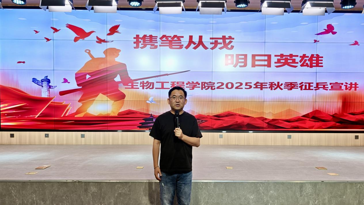 为积极响应国家号召,进一步激发青年学子参军报国的热情,引导广大毕业生将个人理想融入强军实践,6月4日,生物工程学院专门面向2026届毕业生组织召开了征兵政策宣讲会。学院副院长庞捷担任主讲人,征兵宣传大使、退役复学同学王文凯做征兵宣讲,为即将步入毕业学年的学子们解读政策、答疑解惑。