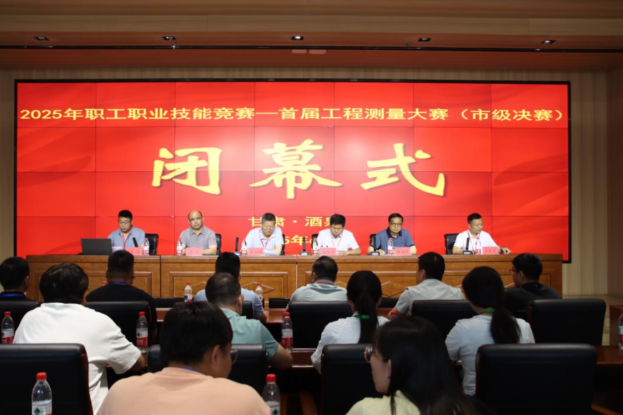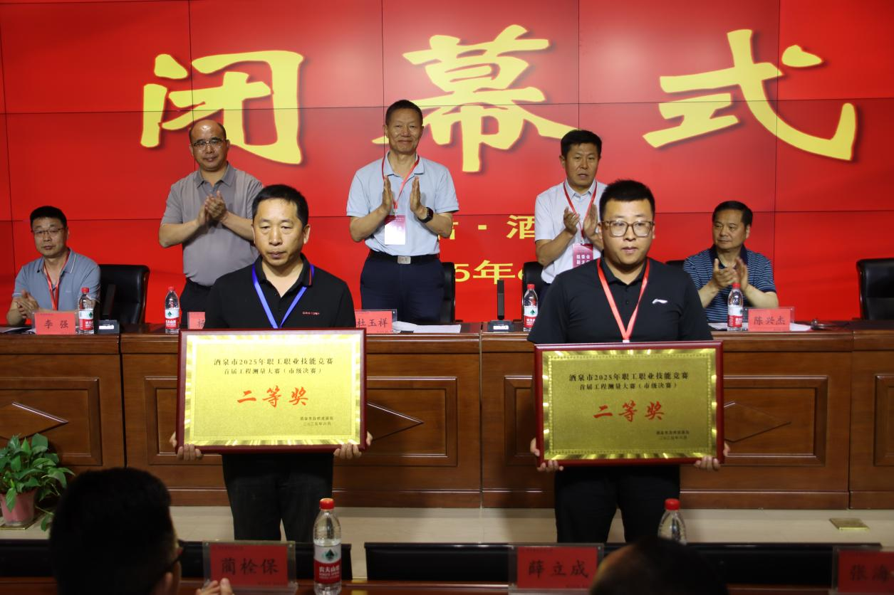 6月8日,2025年酒泉市职工职业技能竞赛首届工程测量大赛(市级决赛)闭幕式在酒泉职业技术大学弘毅楼C102顺利召开。甘肃省地理信息产业协会会长 教授级高工杜玉祥、酒泉市自然资源综合事务中心主任郑国忠、党委委员 副校长杨洁等出席了闭幕式,为在大赛中表现优异的选手和团体颁发了荣誉证书。