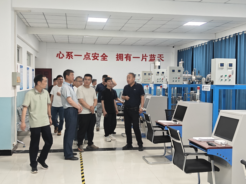 活动伊始,玉门东建材化工园区管委会领导及园区企业代表一行来到化工学院实训基地。在学院党支部书记、院长白锦川的带领下,大家先后参观了化工单元操作实训中心、化工危险化学品特种作业考培基地等多个实训场所。企业代表们仔细询问了实训设备的功能、学生的实训内容以及与企业实际生产的衔接情况,对学院以实践为导向的教学模式给予了高度评价。