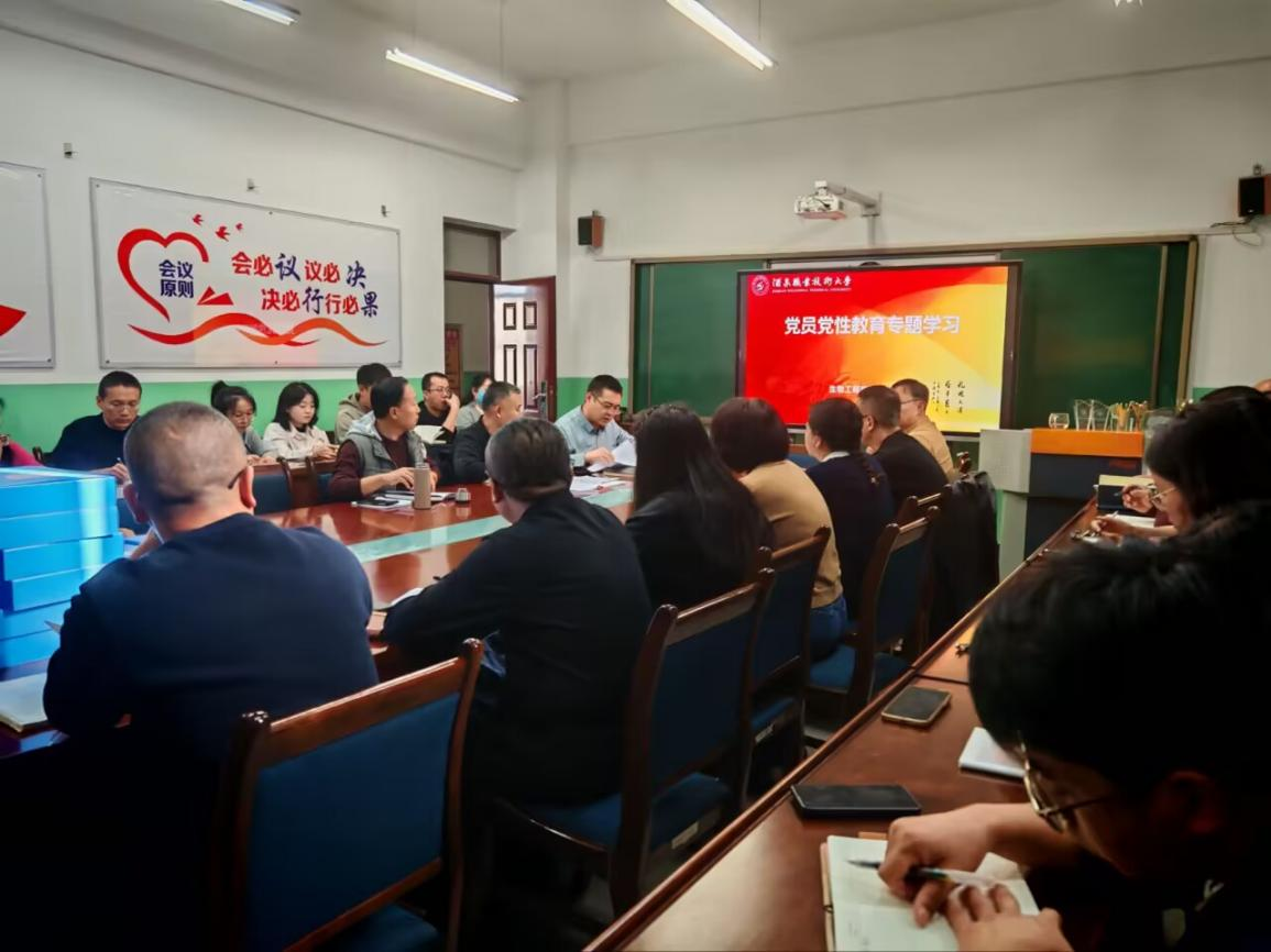 为深入学习贯彻习近平新时代中国特色社会主义思想,推动党的二十届四中全会精神落地生根,进一步强化党员党性修养、宗旨意识和纪律观念,11月4日下午,生物工程学院党支部召开党性教育专题培训会。党支部副书记李涛主持会议,全体教职工参会。