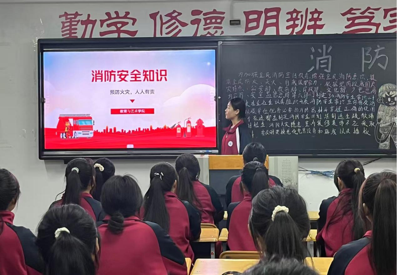 院系动态 > 正文为深入贯彻落实校园消防安全工作相关部署要求,切实提升师生消防安全意识、风险防范能力和应急处置水平,2025年11月8日至12月8日,教育与艺术学院精心组织开展消防宣传月系列活动。活动围绕“全民消防、生命至上——安全用火用电”主题,通过“动员部署、实战演练、隐患整治、文化浸润”四维联动、精准发力,推动消防安全教育走深走实,为学院高质量发展营造安全稳定的育人环境。