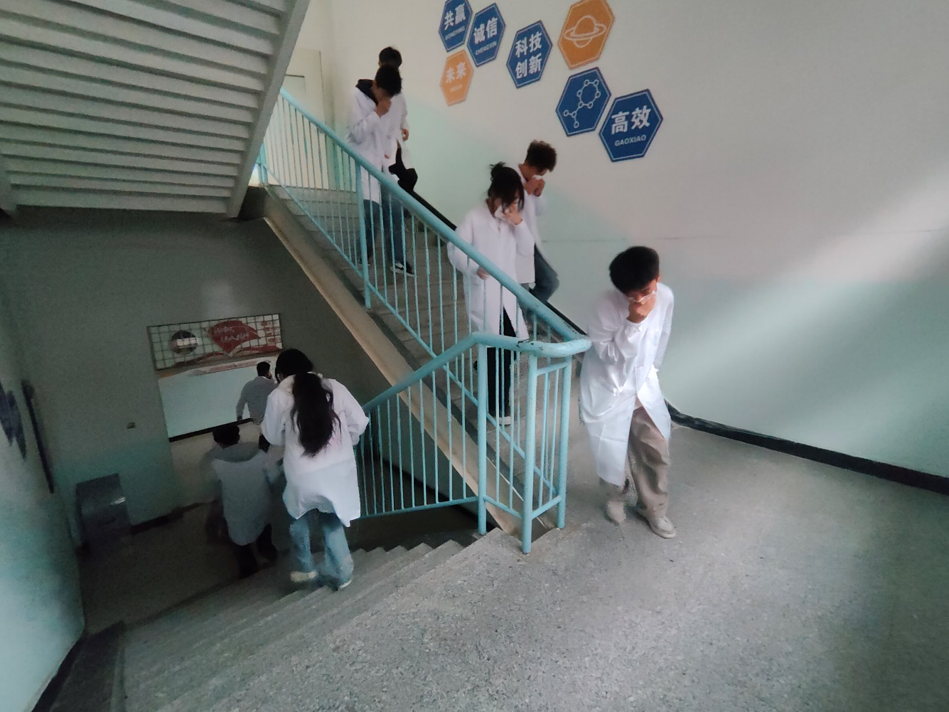 演练模拟实验室因酒精灯打翻引发初期火情。警报响起后,学院应急小组立即启动预案,组织师生沿预定路线快速、低姿态疏散。全体人员在两分钟内有序撤离至安全集结区,过程紧张高效。随后,安全负责人现场讲解并演示了灭火毯、干粉灭火器的正确使用方法,部分学生进行了实操体验。
