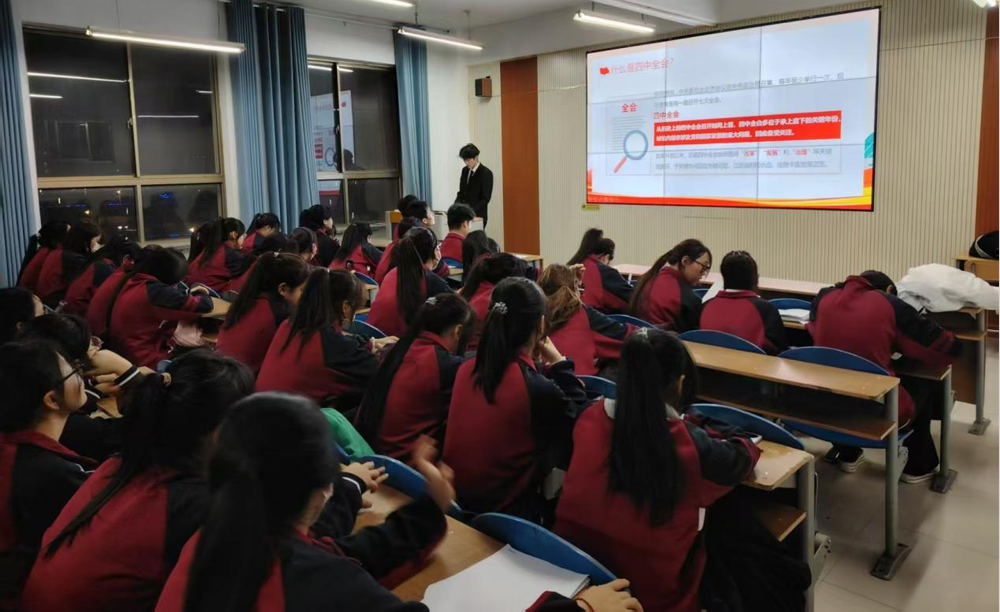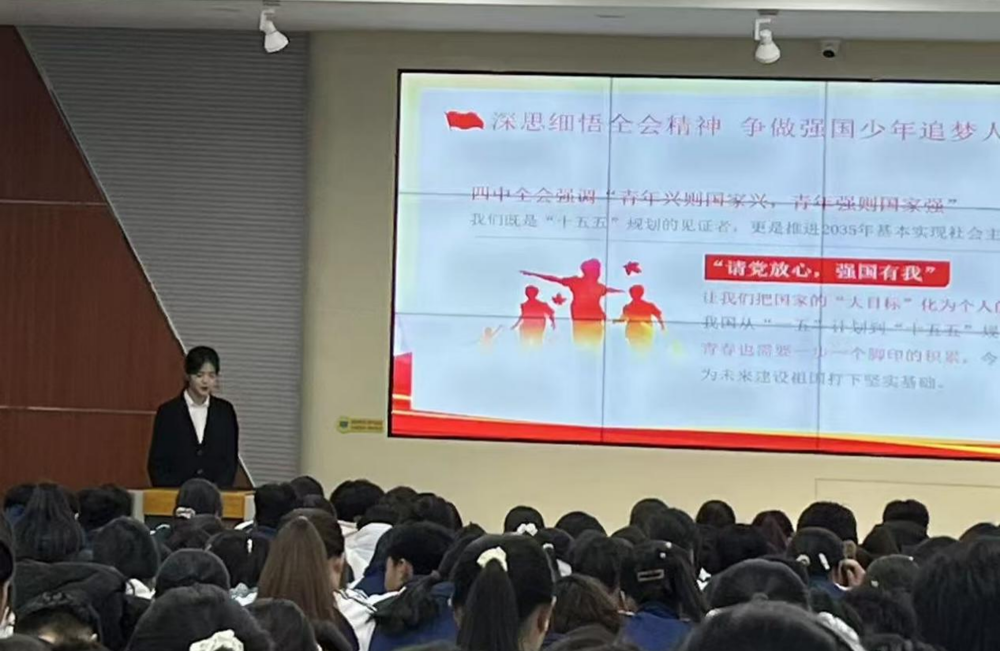 自12月15日起,专项宣讲活动正式启动并全面铺开。学生宣讲团秉持“青马传声·全会领航”精神,在学生之间展开学习贯彻党的二十届四中全会精神专项活动,宣讲团成员深入全校11个二级学院展开宣讲,宣讲范围覆盖以大一学生为主的全校本科、专科各专业学生。宣讲团成员结合本人对过去五年社会经济发展变化的感悟,将全会精神与家乡的变化相结合,利用本土案例,开展内容丰富、贴合时代精神的理论宣讲。此次宣讲推动全会精神入脑入心,打造了“青马协会”理论宣讲的特色名片,深化了校园马克思主义理论的学习氛围,助力学校思想政治教育工作提质增效,对全校学生准确全面把握党的二十届四中全会精神奠定坚实基础。