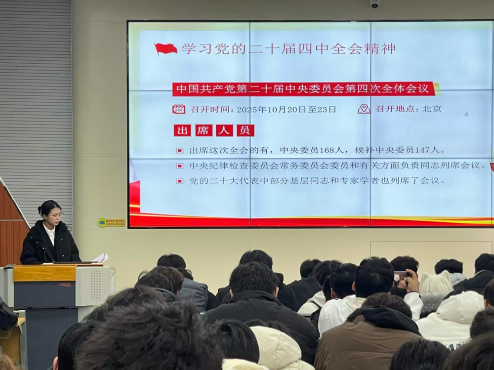 我校马克思主义学院始终将学习宣讲党的二十届四中全会精神作为重要政治任务,总体把握,全面统筹,与各二级学院团委建立联席机制,于2025年12月2日召开了筹备会议,安排部署专项宣讲工作,在“青马协会”内部严格选拔思想坚定、表现突出的16名学生代表,组建“党的二十届四中全会精神”学生宣讲团,并选拔政治素质过硬、理论功底扎实、宣讲经验丰富的骨干教师对宣讲团成员进行专项培训,全力保证专项宣讲活动高质量完成。
