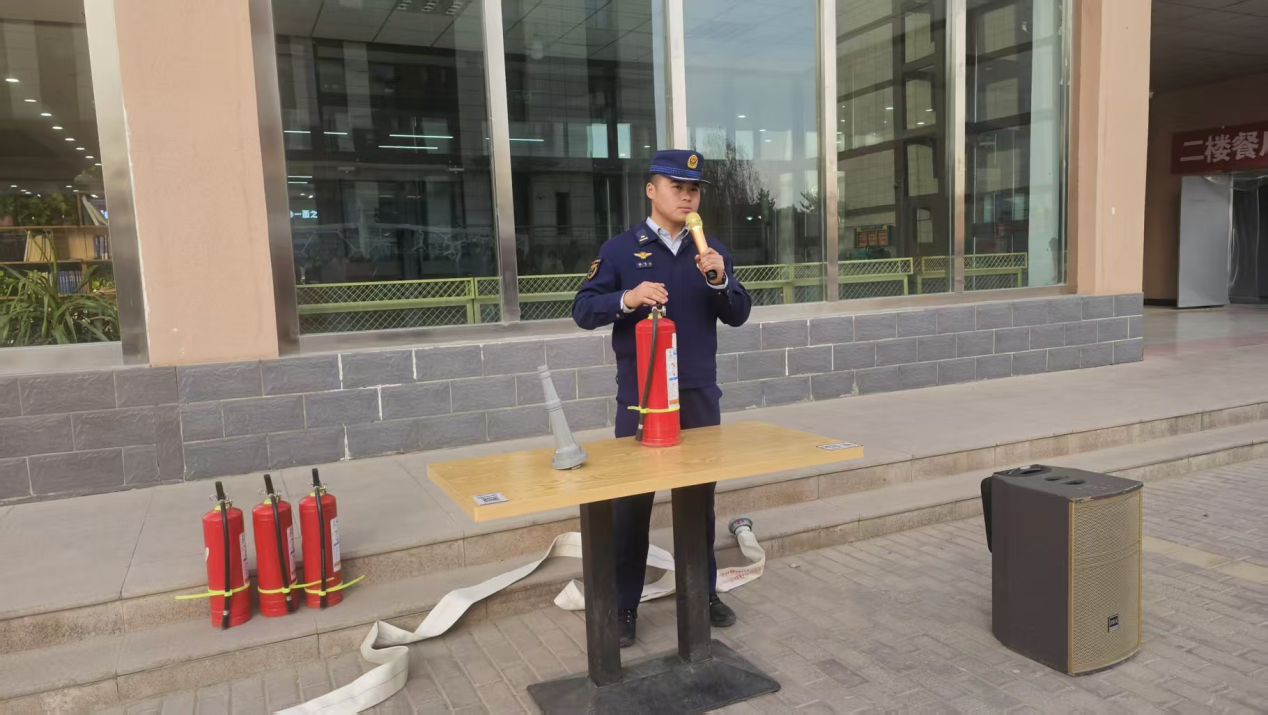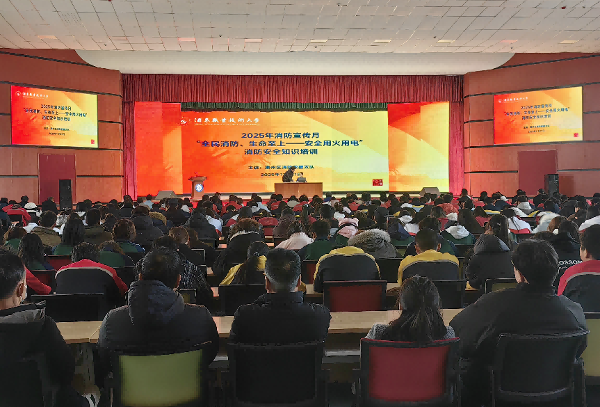 为深入贯彻习近平总书记关于应急管理和消防安全“坚持人民至上、生命至上”的重要指示精神,认真落实《甘肃省教育厅关于组织开展2025年消防宣传月活动的通知》要求,进一步增强师生消防安全知识与自救互救能力,切实保障师生生命财产安全,全力筑牢校园安全根基。2025年11月21日下午,学校在胡杨文化活动中心、飞天餐厅南侧广场成功举办消防安全培训活动。本次活动分消防安全知识讲座、灭火实操培训两个阶段进行。学生处、后勤管理处、创新创业学院负责人,各二级学院学生代表及餐厅、服务中心、物业、安保等一线工作人员共计600余人参加培训。