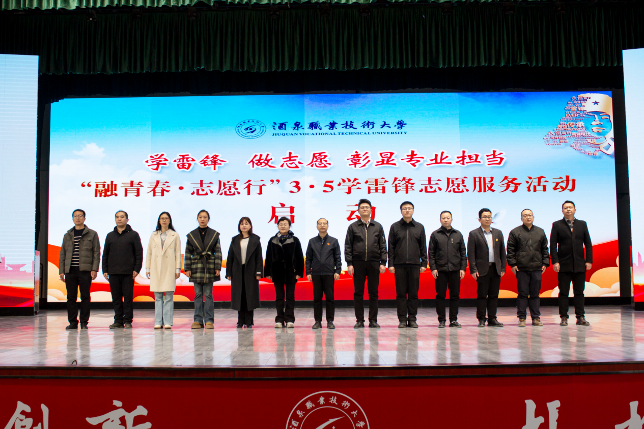 在第63个学雷锋纪念日和第27个中国青年志愿者服务日来临之际,2026年3月4日下午,酒泉职业技术大学“学雷锋 做志愿 彰显专业担当--‘融青春·志愿行’3·5学雷锋志愿服务活动”启动仪式在胡杨文化活动中心举行。党委委员、副校长高翔出席活动。学生工作部、校团委相关负责人,各二级学院分管学生工作副院长、团委书记及志愿者代表共同参加活动。